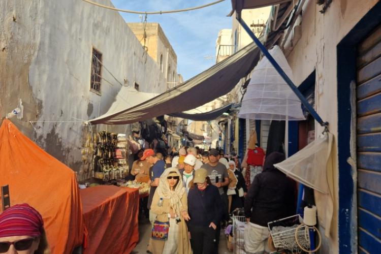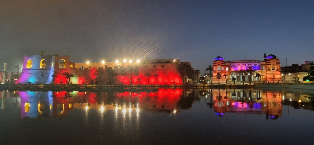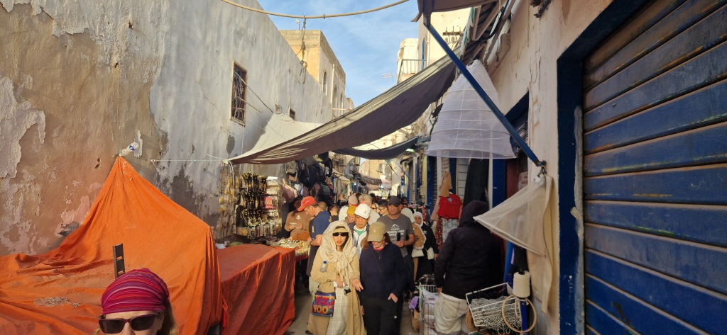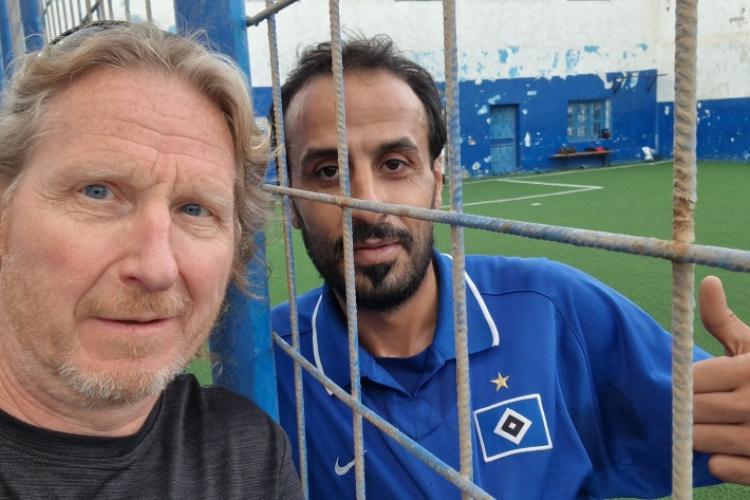 Am nächsten Morgen verließen wir leider diesen herrlichen Ort und besuchten das historische Museum über die Römerzeit in Libyen. Mittagessen in einem (wahrscheinlich besonderen) Restaurant in Tripolis, nur waren die Kellner mit unseren Bestellungen etwas überfordert. Die wurde zwar vom Oberkellner mit dem Dolmetscher aufgenommen, jedoch erfolgte die Auslieferung durch andere Kellner, was bei 50 Gästen (von denen nur 4 arabisch sprechen) schief gehen kann. Nach dem Einchecken im Hotel, das leider nicht annähernd die Qualität des ersten hatte, fuhren wir in die Altstadt zum Stadtrundgang. Einige Schülerinnen feierten ihren Schulabschluss mit Talar, Absolventenhut, Scherpe und großem Blumenstrauß. Wir kauften Kleinigkeiten, tranken Kaffee. Kurz vor Ende der Zone, die wir nun frei erkunden durften, hörte ich auf einem Innenhof charakteristische Fussballgeräusche. Richtig, hier bolzten sie 4 gegen 4 in einem Käfig auf Kunstrasen. Meine Begeisterung war perfekt, da der begnadetste Spieler ein HSV-Trikot trug. In einer Pause zeigte ich ihm meine Brust. Da lächelte er und sagte „Hamburg“. Nun lächelte auch ich. Es ging zum Abschlussessen in ein italienisches Restaurant. Die hatten es besser drauf, brachten fertige Platten an die Tische und platzierten die Vegetarier an einem gesonderten Tisch. Nun hieß es Abschied nehmen von der halben Truppe, die am nächsten Tag nicht über Istanbul zurückreisen wollte.