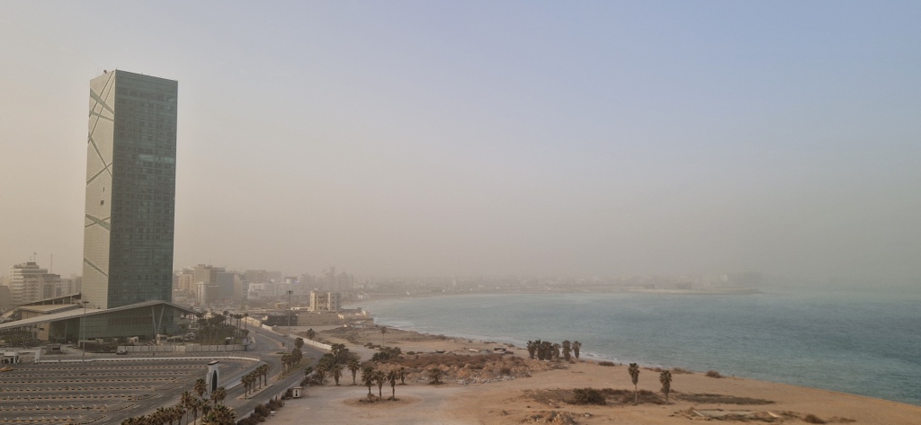 Der Konjunktiv II im Vorsatz wurde am nächsten Vormittag real. Über Tripolis fegte ein Sandsturm und verhinderte die Landung der Turkish Airlines Maschine. Die flog nach Tunis und wieder zurück. Da wir die Immigration schon absolviert und alle nur Visas zur einmaligen Einreise hatten, war ich sehr gespannt, wie das jetzt geregelt würde. Vorteil, wenn man mit dem Reiseleiter im selben Boot sitzt. Der rief die örtlichen Ansprechpartner an, die kamen recht schnell und erklärten der Grenzpolizei die Situation. Unbürokratisch wurden das Datum im Ausreisestempel in unseren Pässen durchgestrichen. Dann fuhren wir mit den uns schon bekannten Tourismuspolizisten und Begleitern ins Radisson Blu-Hotel, in dem wir von der Fluggesellschaft untergebracht wurden. Diesmal bekam jeder ein Einzelzimmer. Ich machte das beste aus dem angebrochenen Nachmittag und schaute mir den HSV-Sieg live auf dem ipad an. Übrigens bei deutlich angenehmeren Temperaturen als für die Fans im Stadion, die sich bei Minus-Temperaturen warmhüpfen mussten, wir mir später berichtet wurde. Am nächsten Tag klappte die Rückreise und am späten Sonntagabend holte Doris uns vom Hamburger Flughafen ab. Klaus fuhr mit einer Thermoskanne schwarzem Tee und einer Flasche Cola Zero weiter nach Dänemark. Ich fiel todmüde ins Bett. Das waren die Planänderungen auf meiner Reise zum 115. Länderpunkt.