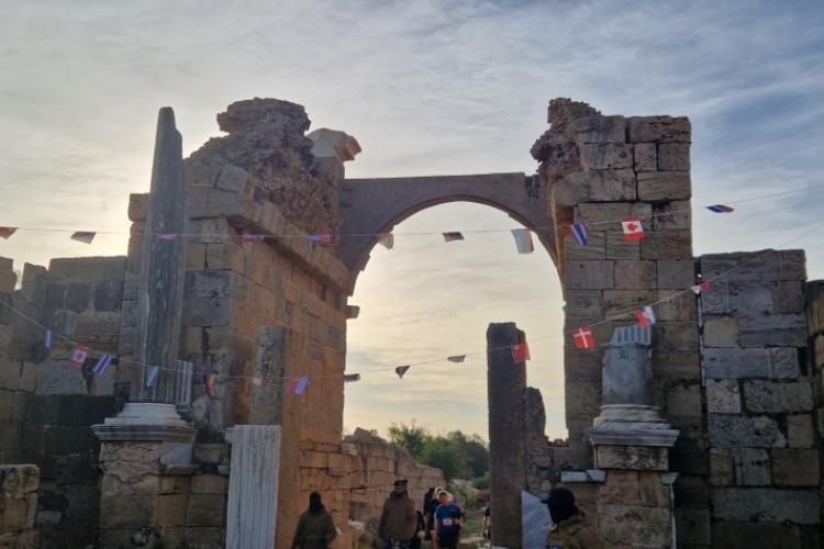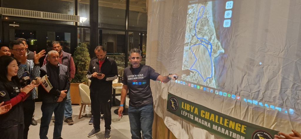 Laufgerecht bekleidet zum Frühstück und danach mit dem Bus zur historischen Stätte Leptis Magna. Die üblichen Fotos wurden geschossen, Interviews für einen Regionalsender, eine kurze Ansprache .. und los.