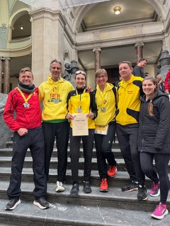 Austragungsort ihres neusten Jubiläums war die niedersächsische Landeshauptstadt. Neben Marathon, Halbmarathon und einem 10-Kilometer-Lauf wurde dort auch ein MiniMarathon angeboten. Mit knapp 34.000 Anmeldungen stand das ganze Wochenende im Zeichen des Ausdauersports. Und wer bereits in Hannover gelaufen ist, der weiß: Die Strecke ist flach, schnell und das Event ist eine große Party. Sylke genoss diesen Lauf sehr, da sowohl ihr Mann als auch ihre Tochter beim Marathon mitliefen. Nach 3:45:57 Stunden kam sie bei idealen Wetterbedingungen ins Ziel und wurde von 100MC Sportwart Michael Kiene im Neuen Rathaus geehrt. Anwesend war auch 100MC Mitglied Jobst von Palombini, der an diesem Tag in Hannover seinen 1000. Marathon feierte.