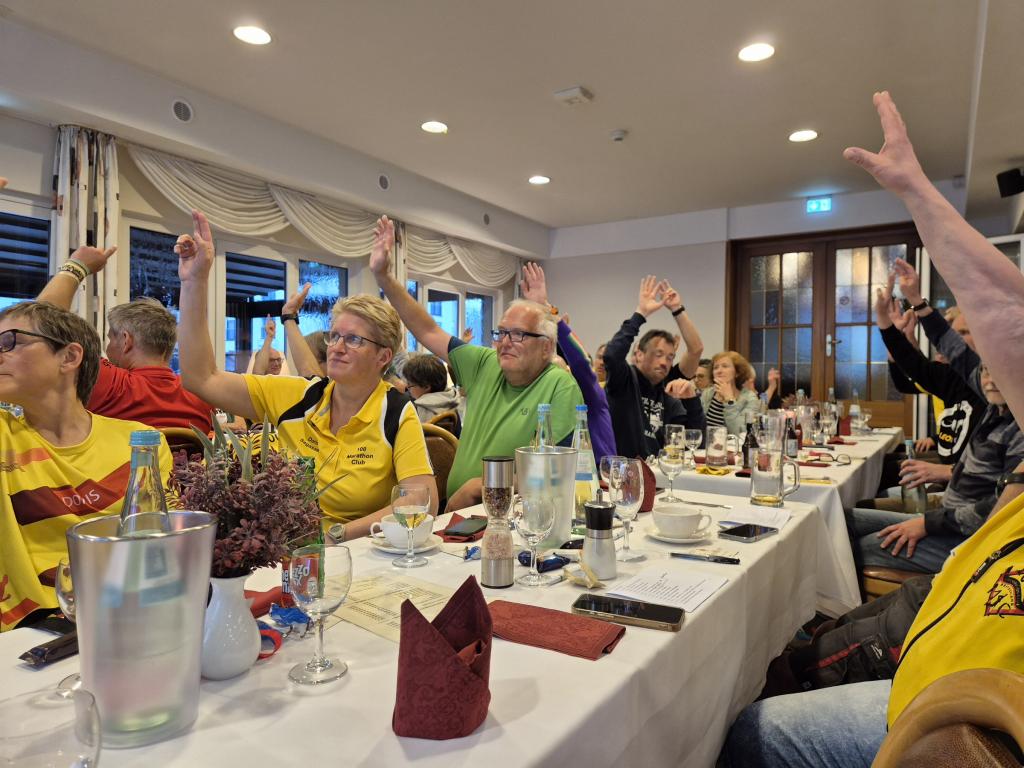 Über drei Stunden wurde Punkt für Punkt der Tagesordnung durchgegangen, lebhaft diskutiert und immer wieder abgestimmt. Wie alle drei Jahre wurde der Vorstand des 100 Marathon Clubs gewählt - in diesem Jahr ohne personelle Änderungen. Und auch über die Änderung der Zählordnung wurde in mehreren Punkten abgestimmt.