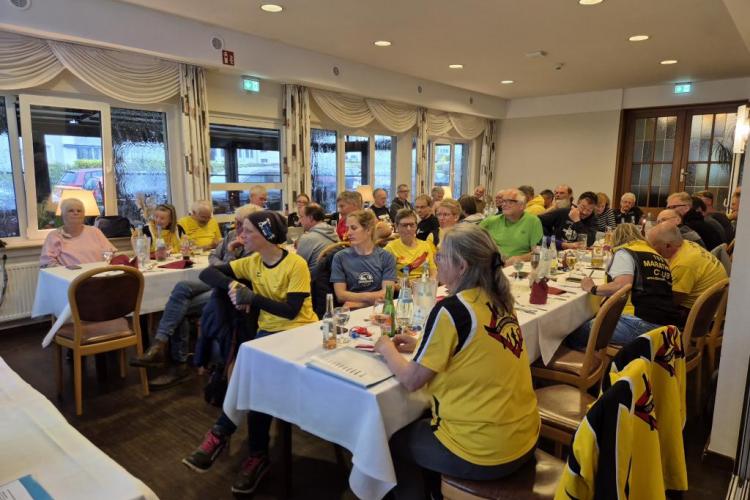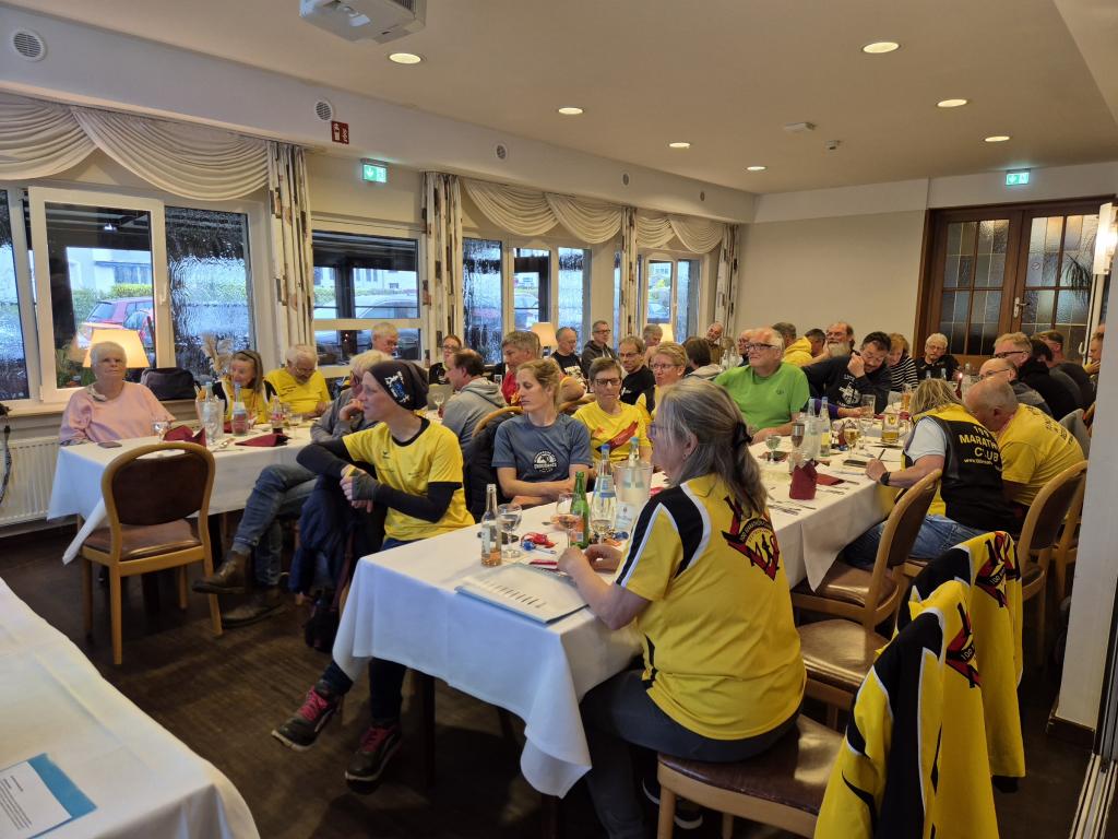 Zur Jahreshauptversammlung erschienen knapp 50 Mitglieder und Gäste. Ab 17 Uhr gab es im Hotel Zur Mühle für alle Anwesenden eine Pasta-Party. Danach eröffnete Mario Sagasser (1. Vorsitzender) die Sitzung und begrüßte neben den Mitgliedern und Gästen die drei Ehrenmitglieder Sigrid Eichner, Hans-Joachim Meyer und Doris Sagasser.