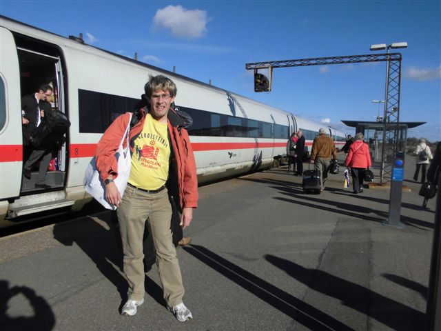 Irgendwie scheinen die Dänen mit der deutschen Hochgeschwindigkeitstechnologie ihre Schwierigkeiten zu haben. Bereits als ich vom Jubiläumsmarathon in Stockholm kam, wurde der ICE in Kopenhagen 30 später bereitgestellt, und jetzt steckte er wieder in Dänemark fest...also Schienenersatzverkehr zum Fähranleger Puttgarden.