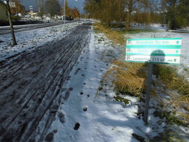 Nur noch 600m bis Strandnäs. Als ich vor 3 Monaten diese Reise plante, was der billigste Hotel das "Pommern" für 78 Euro. Eine Woche vor Abfahrt, habe ich dann das "Strandnäs" für nur 53 Euro entdeckt, und die andere Buchung wieder storniert. Während ich vom "Pommern" auf meine Anfragen bei der Buchung betreffs Früstückszeit und Gepäckaufbewahrung während des Laufs keine Antwort erhielt, klappte der Mailverkehr mit dem "Strandnäs"...Hotel also eine gute Wahl. Die Auswahl an verfügbaren Unterkünften ist zu dieser Jahreszeit bescheiden, und die Günstigeren haben alle geschlossen.