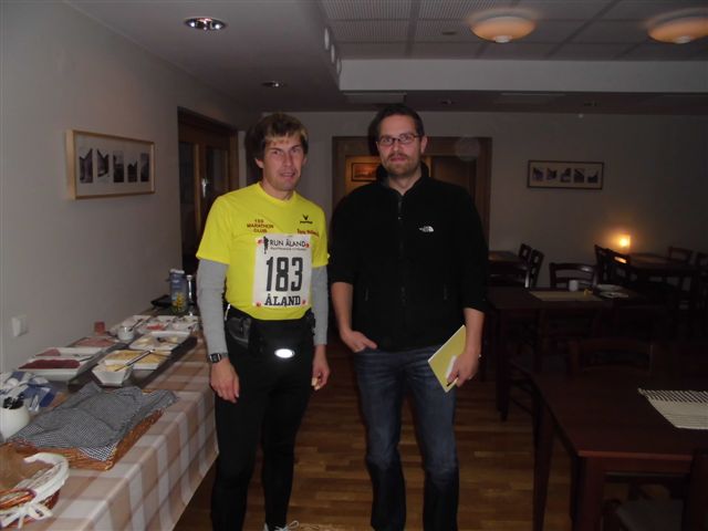 Kreuzt man im Ausland im 100 MC Hemd auf, wird man meist angesprochen. Kim aus Heide hat es auf diese Inselgruppe gezogen. Nein, er wollte heute nicht laufen, sondern nächstes Jahr im Mai einen Halbmarathon über 15 Inseln auf Brändö organieren. Tipps betreffs Orga wollte er sich heute beim Marathon in Mariehamn holen. Er bat mich, seinen Lauf in Deutschland bekannt zu machen.