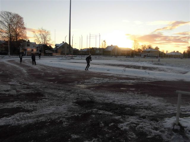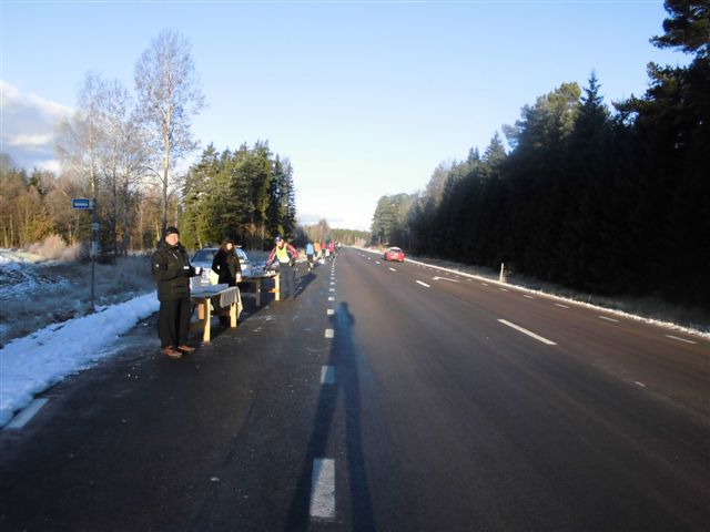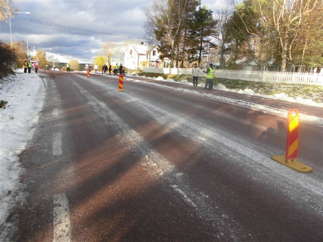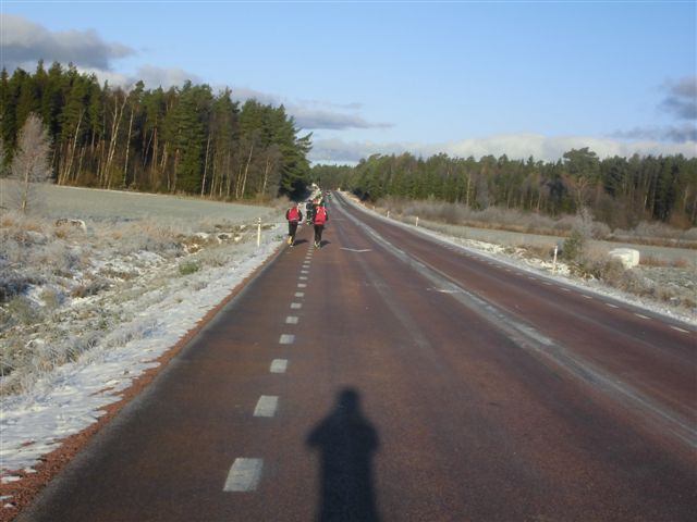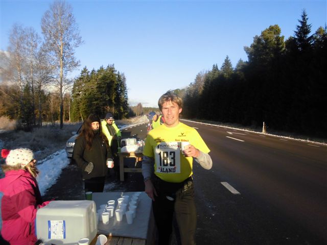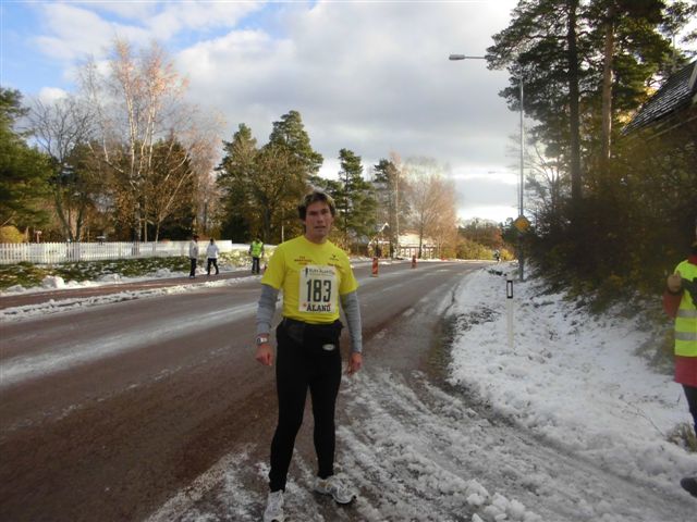 In Anbetracht der Rutschgefahr wollte ich heute ganz langsam anfangen und hatte daher keine Ambitionen mich in die vorderen Reihen zu mischen. Und es war auch noch kein Kilometer gelaufen, als ich das erste Sturzopfer sah. Aus der Stadt rausgekommen liefen wir auf der Straße 1 Richtung Eckerö; hier entspannte sich die Lage. Auch meine Hände wurden mit der Zeit warm; außer mir lief kaum jemand ohne Handschuhe.