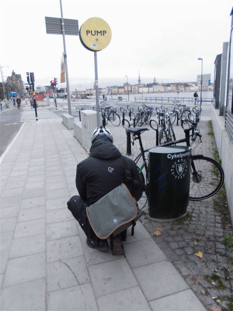Als ich dann in Stockholm von der Fähre zum Bahnhof ging, sah ich diese Fahrradaufpumpstation. Eine sehr gute Einrichtung, die hoffentlich auch bald flächendeckend in deutschen Länden gesichtet werden kann.
