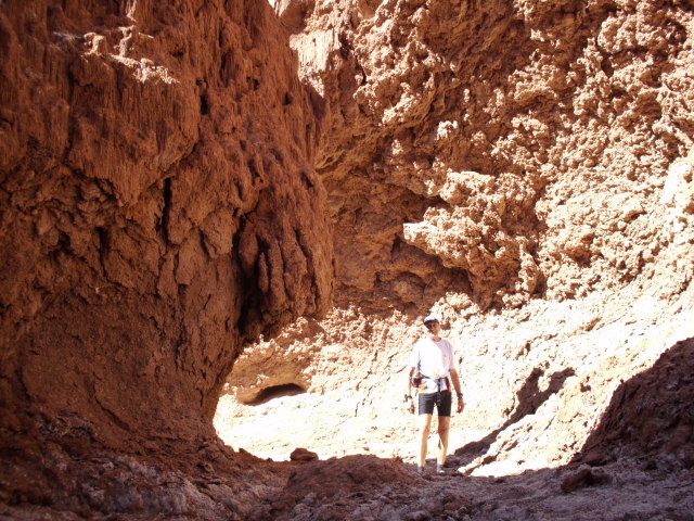Dieses Jahr begann die Abenteuer-Läufer-Reise gleich in San Pedro de Atacama nach 6 Flügen u.a. über Amsterdam, Atlanta, Miami, Lima, Antofagasta und 2 Busfahrten. Start war um 6 Uhr in der Dunkelheit im Tal des Todes. Die Strecke war durch farbige Bänder gut markiert, die aber in der noch finsteren Nacht nicht zu sehen waren, so dass wir nach mehreren Fehlversuchen und einsetzender Dämmerung schließlich den Weg durch das Tal des Schweigens und das Tal des Mondes mit seinen schwarzen Sanddünen fanden. Bei km 32 kam dann die Stunde der Wahrheit. Vor 4 Jahren hatten wir uns ab hier verlaufen und mussten dann unseren eigenen Weg finden, der uns dann schließlich auf Umwegen zurück zu unserem Hotel führte .Dieses Jahr halfen uns die Wegbeschreibung und die farbigen Bänder dann durch atemberaubende Felsschluchten mit steilen Abstiegen und Passagen unter niedrigen Felsen. Schließlich waren wir nach sengender Hitze wieder in der ca. 2.500 m hohen Ebene. Dort wartete bereits im Ziel ein Schuttlebus, der uns Marathonis wieder zurück zum Hotel brachte. Die Siegerehrung fand dann bei einer Grillparty am Pool statt. Wasser gab es in diesem Bereich der Wüste durch die in der Ferne liegenden schneebedeckten Vulkane , von denen ich vor Jahren den 5.832 m hohen Licancabur bereits mit dem Alpenverein bestiegen hatte.