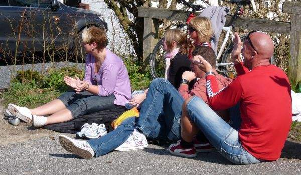 Michael Nielsen reiß am Ende der Steigung einem Zuschauer ein Glas Rotwein aus der Hand und nimmt erst einmal einen großen Schluck