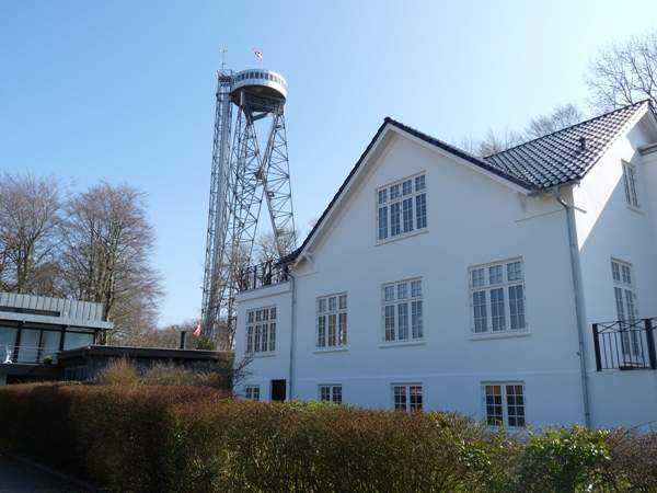 am Ende der Steigung biegt die Streckenführung nach links ab und die Aktiven passiert diesen Wasserturm