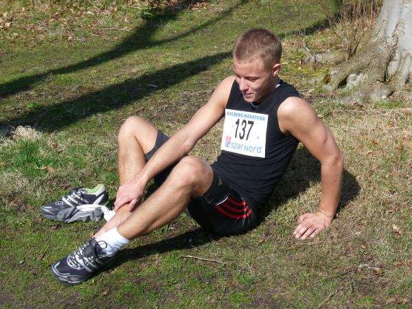 er nennt sich schließlich Brutal Marathon! Der Däne Jesper Madsen hat sich den Fuß verdreht. Nichts geht mehr! Ein Helfer stützt den Dänen auf dem Restweg aus dem Wald und der Quentsch wartet bereits am Waldrand mit seinem Auto und fährt den jungen Mann dann zum Ziel. In der Ergebnisliste stehen später ca. 20 Teilnehmer mit dnf (aufgegeben)