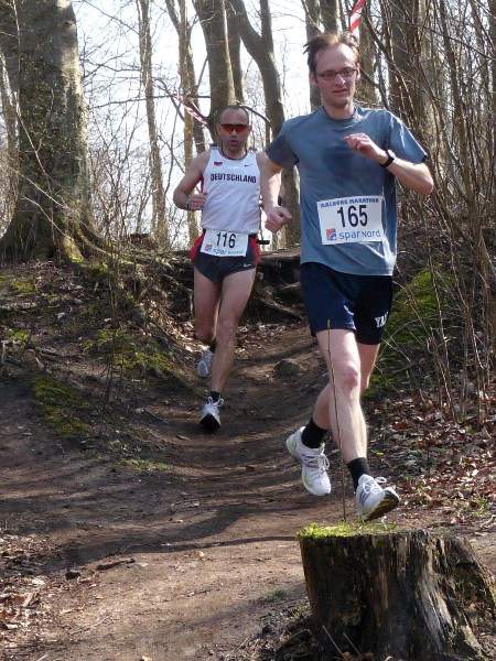 weiter geht es durch das Waldstück. Auf dem Foto der Kaltenkirchener Helmut Jung Gedächtnislaufgewinner 2008: Jesper Hahn Jensen, der seinen dritten Marathon am dritten Tag in Folge lief