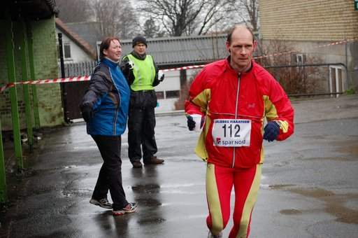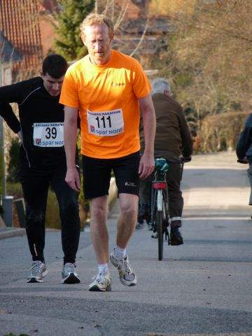 Rundenende und Ziel. Rechts mit der Startnummer 69 Preben Skovmand aus Augustenborg, der 2006 in Deutschland den Rendsburg Marathon gewinnen konnte. Gleich vier dänische Läufer blieben auf der schweren Strecke unter 3 Stunden. Sieger wurde Peter Mousten aus Aalborg mit einer Endzeit von 2:54:24 Stunden