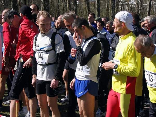 Hirendra Kurani (118), Werner Burmeister (HSV), Sven Peemöller (rote Brille) und Klaus Bangert (orange) vor dem Start in einer kleinen Parkanlage
