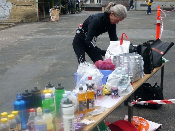Das erste Auto mit René, Sven, Klaus und Thomas verließ den Veranstaltungsort gegen 17 Uhr, wir (Hiren, Regine und ich) warteten auf die Zielankunft von Superwalkerin Rita. Hieß es im Vorwege, dass Rita beim Überschreiten des Zeitlimits von 6 Stunden ein dnf. bekommen wird, so änderte der Hauptorganisator während des Rennverlaufes bereits seine Meinung. Begeistert von der sportlichen Vorstellung von Rita (man die geht ja fast 7 km in der Stunde!) kündigte er an sie doch zu stoppen, auch wenn das Zeitlimit (etwas) überschritten wird. Nach 5,5 Runden lag der dänische Marathonläufer Toni Emanuel Kjaer allerdings auch nur noch ca. 3:30 Minuten vor ihr. Auf der letzten halben Runde konnte Rita den Läufer des dänischen 100 Marathon Clubs noch überholen und beendete mit einem ganz knappen Vorsprung von 7 Sekunden als Vorletzte diesen Lauf.