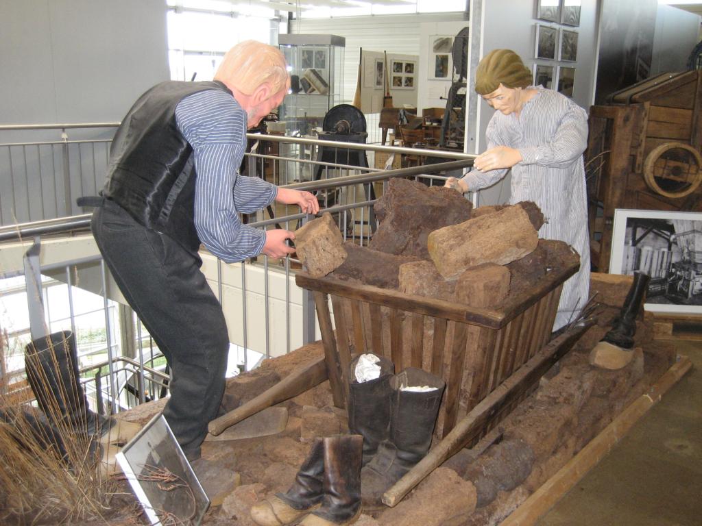 Doch mit Lohnes Aufstieg hat die Dampfmaschine erst einmal wenig zu tun. Im zweiten Stock aber residiert Martina, eine ausgestopfte Gans. Sie ist das eigentliche Symbol für die Industrialisierung Lohnes. Doch Mitte des 19. Jahrhunderts war es vorbei mit dem Aufschwung. Die Stahlfeder aus England leitete den Niedergang der Gänsekiel-Federn ein. So sattelten sie um erst auf Pinsel und Tabak, später auf Torf, Leder und Korken. Manches hat sich bis heute gehalten, anderes konnte sich nicht durchsetzen, wie das rote Fuldamobil. Vom Fuldaer Karl Schmidt entwickelt, wurde es vom 13. April bis Ende Oktober 1955 in Lohne produziert. Der dreirädrige Kleinwagen, im Volksmund wegen seiner rundlichen Form "Das Ei" genannt, brachte es mit seinem luftgekühlten Zweitakt-Motor auf 75 km/h Höchstgeschwindigkeit und verbrauchte 4 Liter Benzin auf 100 km. Insgesamt wurden in Lohne nur 701 Fuldamobile gebaut. Die Konkurrenz war zu groß.