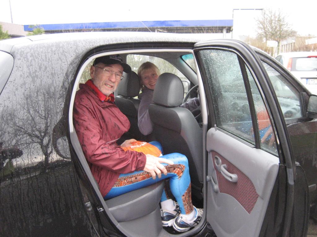Reinhardt Wilak vom Orgateam hat nun auch für uns Bahnfahrer eine Lösung. Er schickt uns am Marathonmorgen eine attraktive und äußerst nette junge Läuferin, die uns mit dem Auto vom Hotel abholt und zum Motorpark fährt. Sie selbst läuft auch mit und zwar im Staffelwettbewerb, bringt darüber hinaus noch Kuchen mit und gibt die Startnummern für später stattfindende Läufe aus. Bis 15:00 Uhr geht dieser Einsatz und so macht es ihr auch nichts aus, uns beide anschließend wieder zum Hotel zurück zu fahren. Vielen Dank für diesen erstklassigen und sicherlich nicht selbstverständlichen Service.