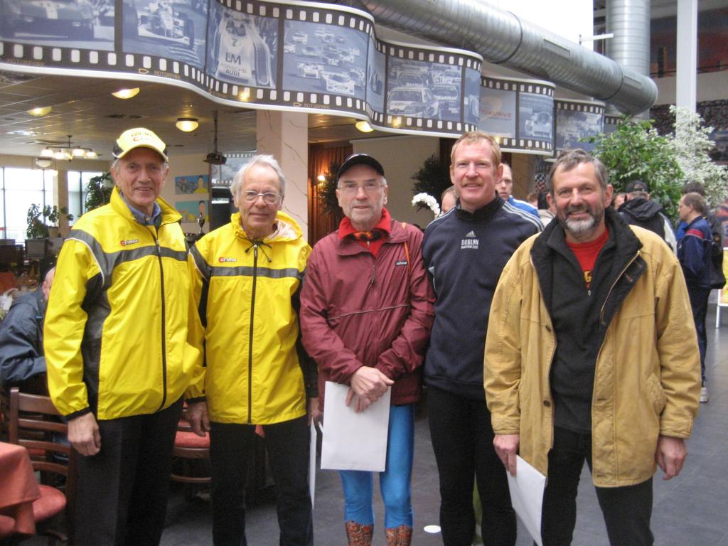 Bei unserer kurzen Autofahrt vom Hotel hierher hat es geregnet. Jetzt müssen alle raus zum Start und siehe da, es regnet nicht mehr. Das hebt natürlich die Stimmung an und alle sind guter Laune. Gerd-Rudi Papcke ebenso, wie Wolfgang Kieselbach. Ganz locker Hans-Joachim Meyer, ganz ruhig Johann Spieker. Jürgen Kuhlmey lächelt auch, nur Dietrich Eberle blickt etwas skeptisch drein.