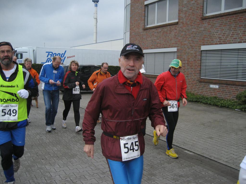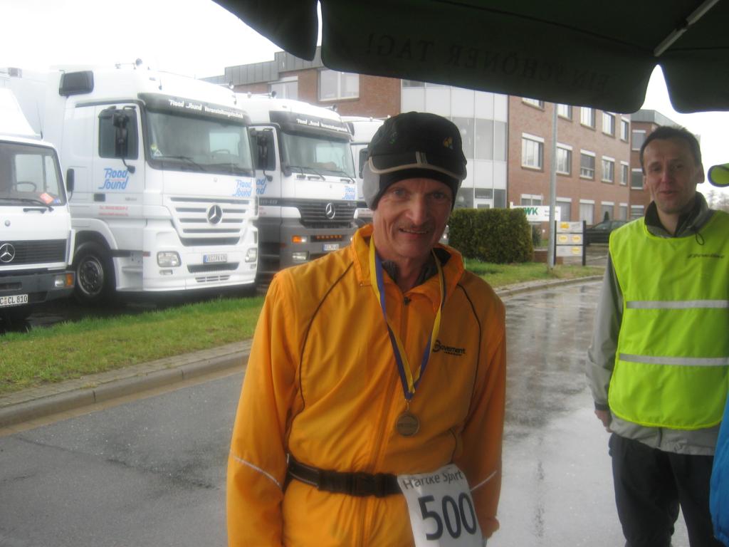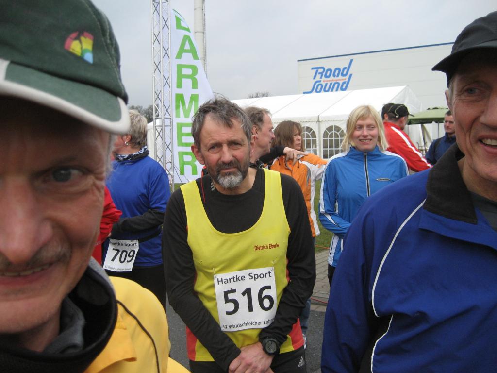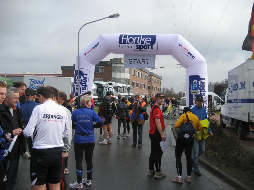 Für den fünf Kilometer langen Weg zum Marathonstart zeigt sich der Veranstalter, der Lohner Lauftreff „Waldschleicher“ sehr hilfsbereit. Das hatte ich schon um den Jahreswechsel erlebt, als ich um ein Foto der letztjährigen Veranstaltung gebeten hatte, auf dem Helmut Braun und Sigrid Eichner zu sehen sind. Umgehend wurde mir das Foto damals per e-Mail Anhang zugeschickt, so dass ich dieses Material für die Ziel-60-Marathon Zertifikate verwenden konnte.