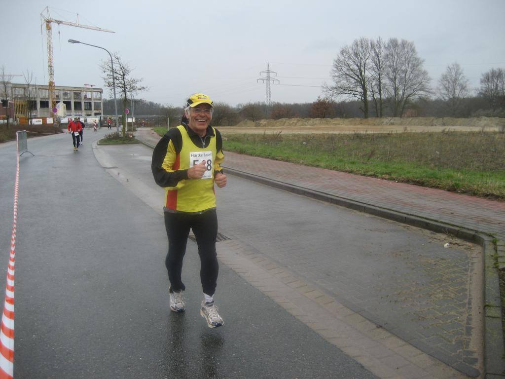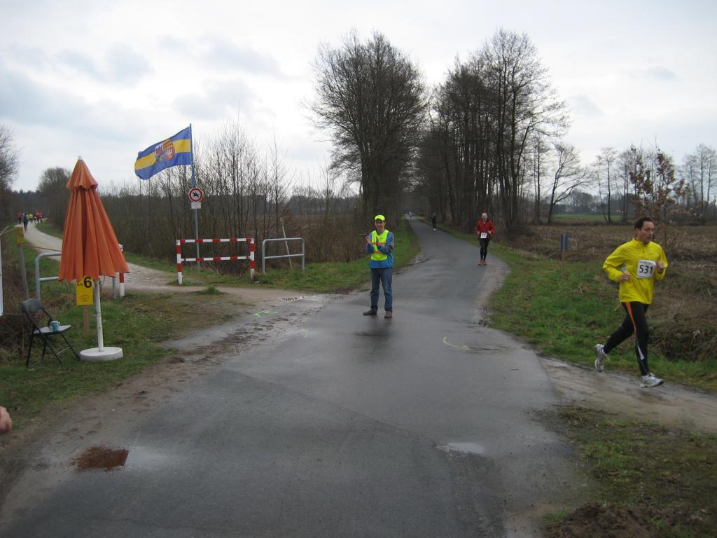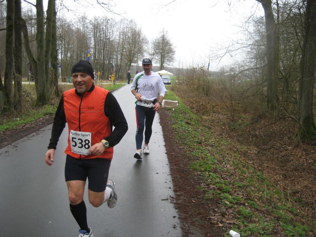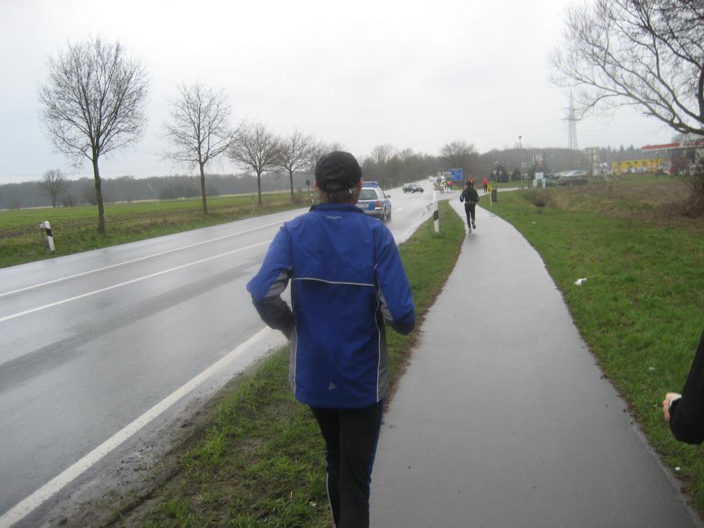 Inzwischen hat es wieder zu regnen begonnen und ich bin froh, dass ich mich warm angezogen habe. Gerd-Rudi Papcke tut sich schwer, liegt rund anderthalb Kilometer hinter mir. Nach meiner zweiten Runde zeigt die Uhr 2:06 Stunden. Gerd-Rudi wird, geplagt durch eine Erkältung, nach der zweiten Runde aussteigen.