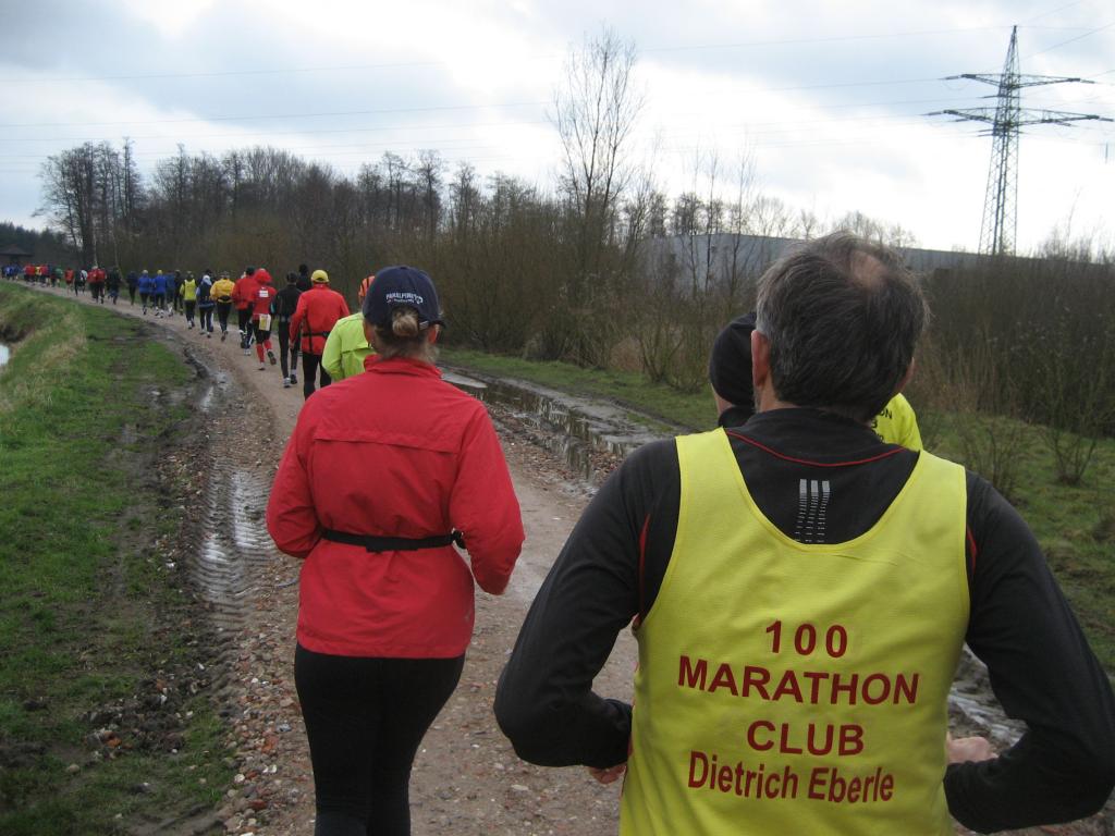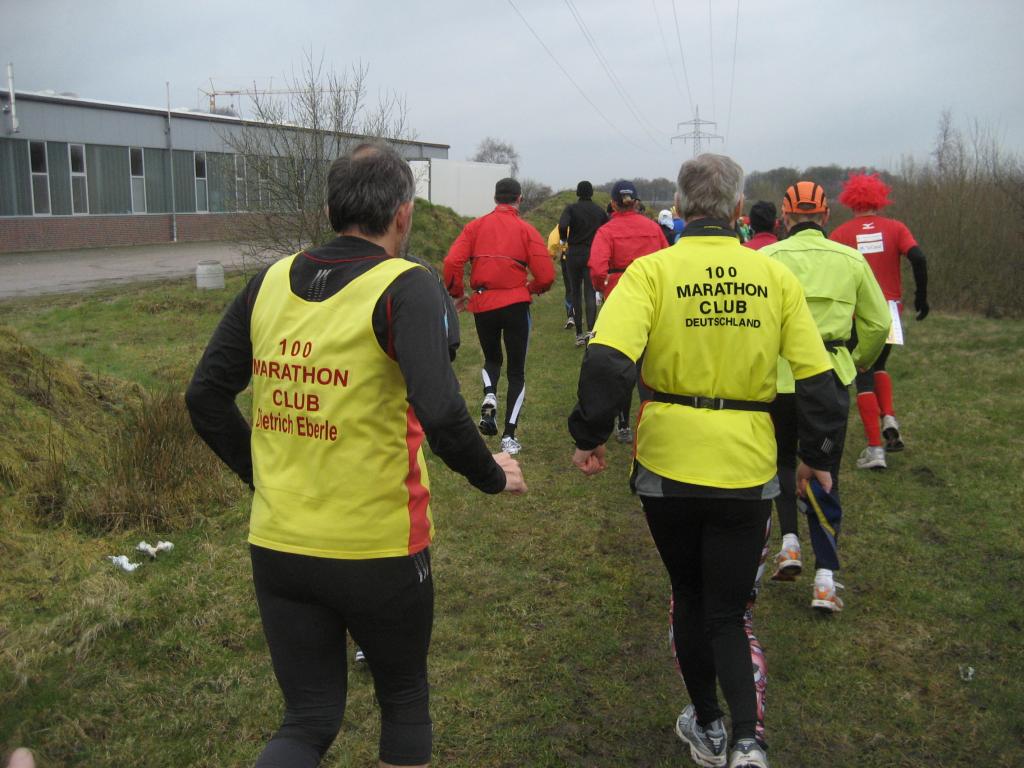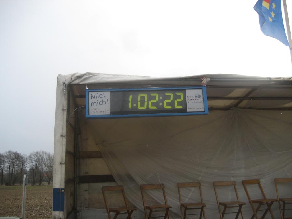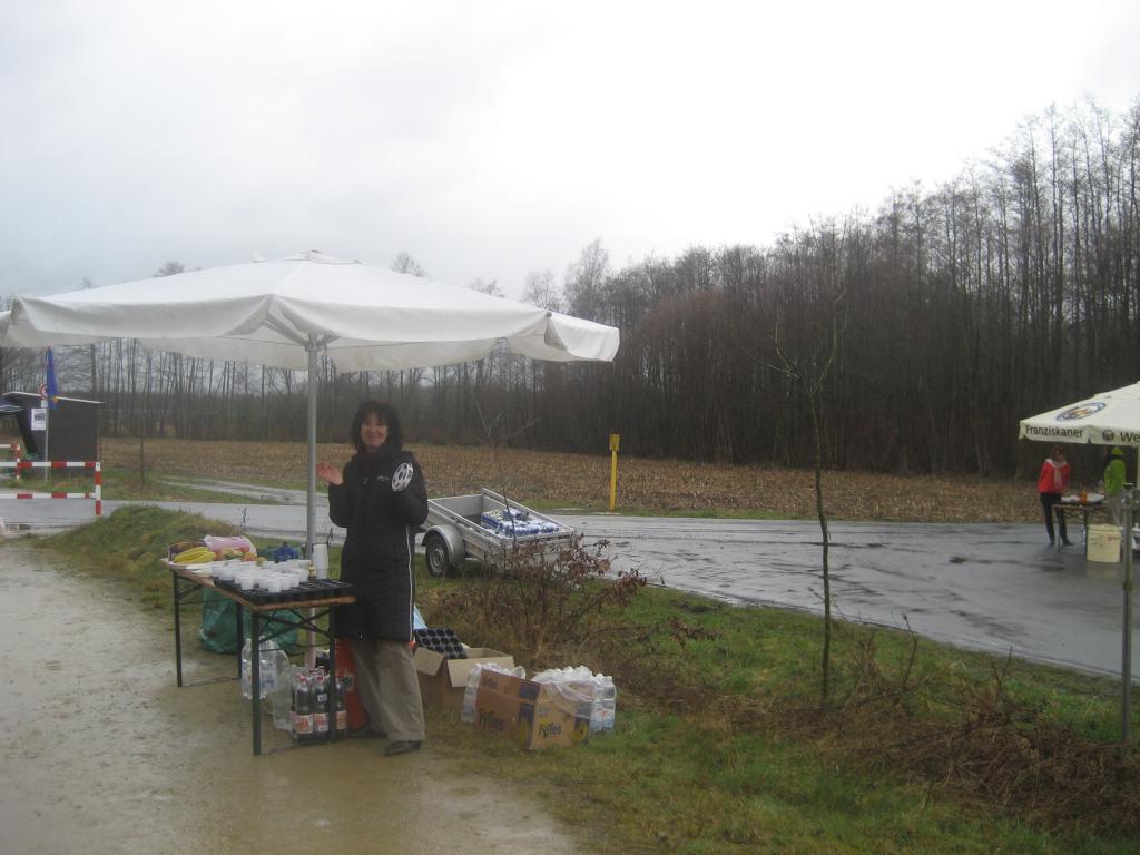 Inzwischen hat es wieder zu regnen begonnen und ich bin froh, dass ich mich warm angezogen habe. Gerd-Rudi Papcke tut sich schwer, liegt rund anderthalb Kilometer hinter mir. Nach meiner zweiten Runde zeigt die Uhr 2:06 Stunden. Gerd-Rudi wird, geplagt durch eine Erkältung, nach der zweiten Runde aussteigen.
