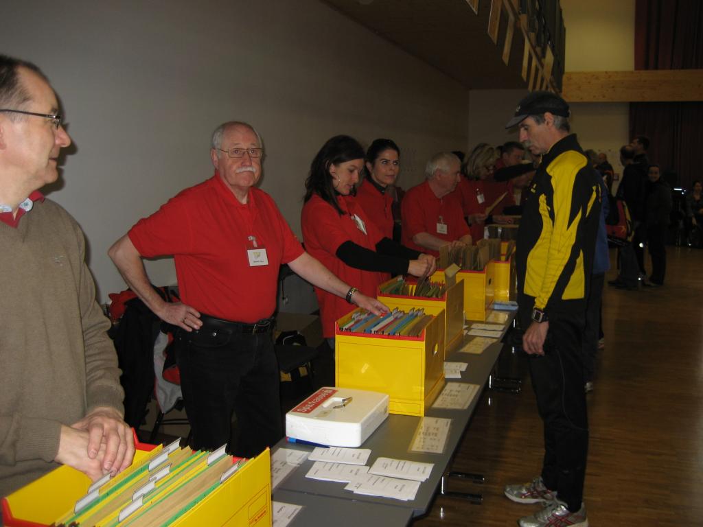 Gut besetzt die Startnummernausgabe, hier der Schalter für die Voranmeldungen. So gibt es kein Gedränge.