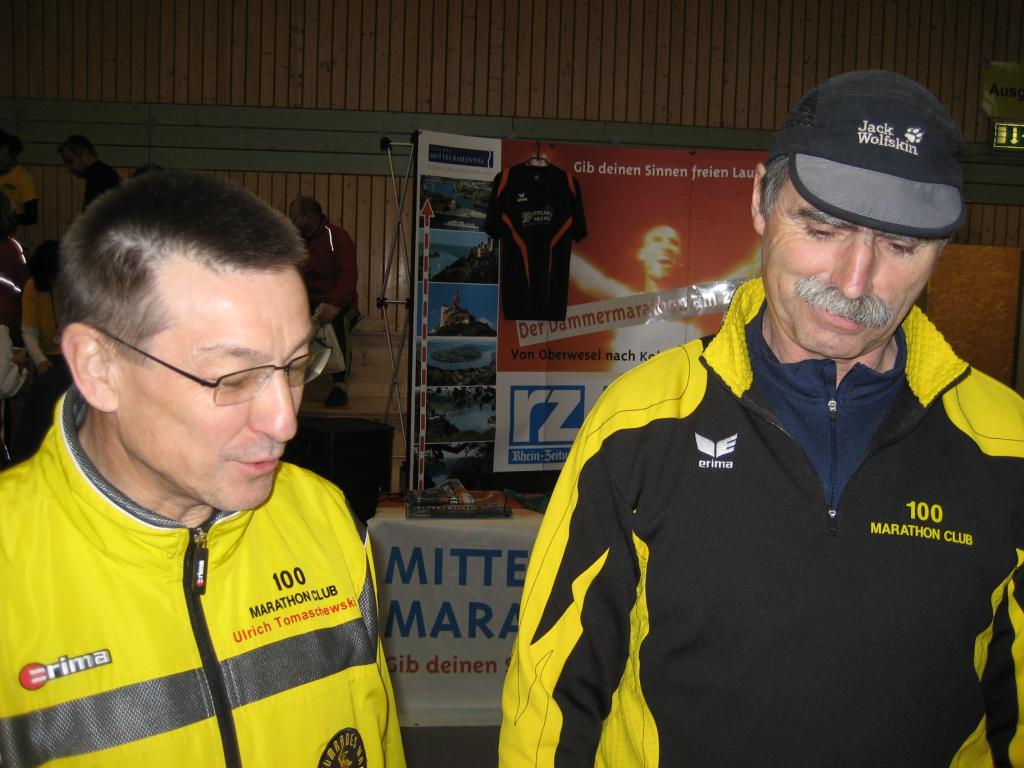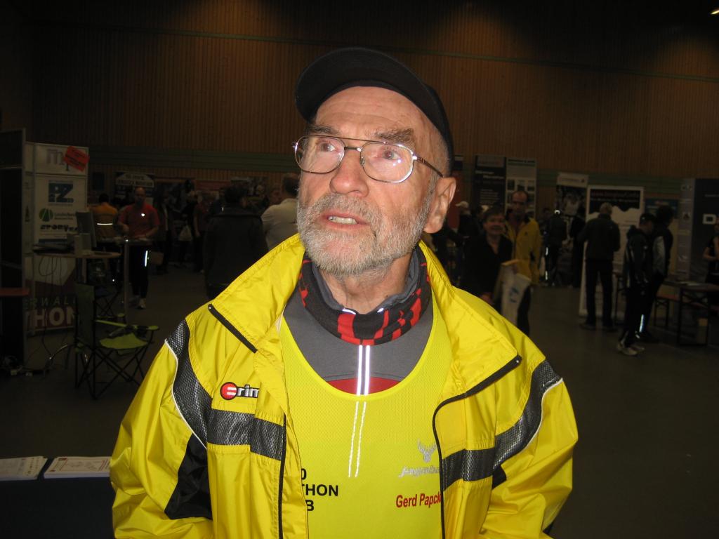 Auf dieser Messe, treffe ich auch die Clubmitglieder Ulrich und Dietmar. Auch "Keule" Klaus ist hier, unser Ultraläufer des Jahres 2009 mit 103 Ultras. Auch Gerd ist nur eine Woche nach Antalya bereits wieder erholt genug für einen Marathonstart. Bewundernswert diese Fitness des 77 jährigen. Und auch Christoph ist wieder hier, ebenso, wie seine Vereinskollegen vom LT Hemsbach Daniel und Bernhard, der allerdings heute nur Zuschauer ist. Die Füße sind noch zu sehr geschunden, alles voller Blasen von einem Laufabenteuer, das ich mir dummer Weise nicht gemerkt habe.