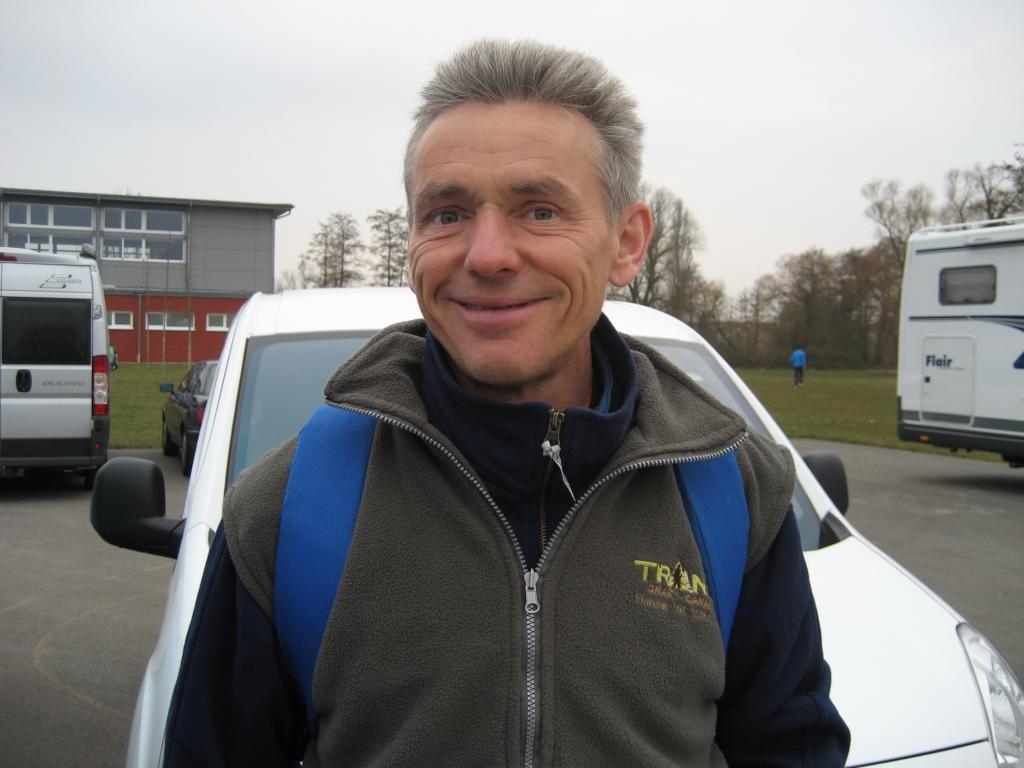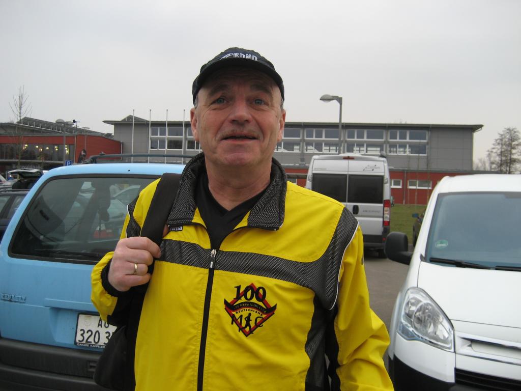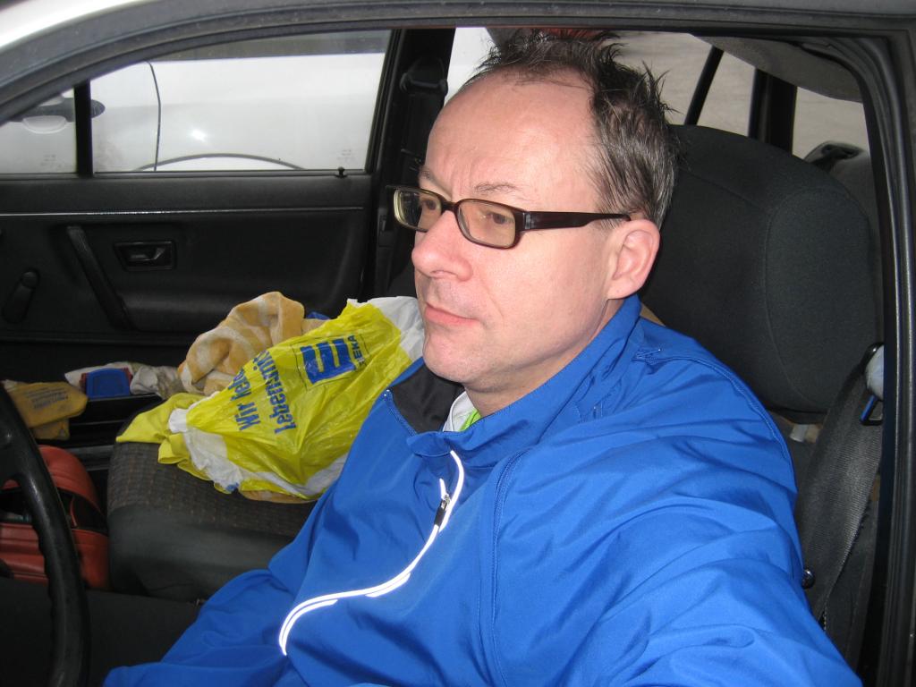 Klaus-Peter verteibt sich die Zeit bis zum Start im Auto. Am Start treffe ich Renate und Klaus hat sich auch hier eingereiht. Dann kann es ja losgehen, bei 4°C auf trockenen schnee- und eisfreisen Straßen.
