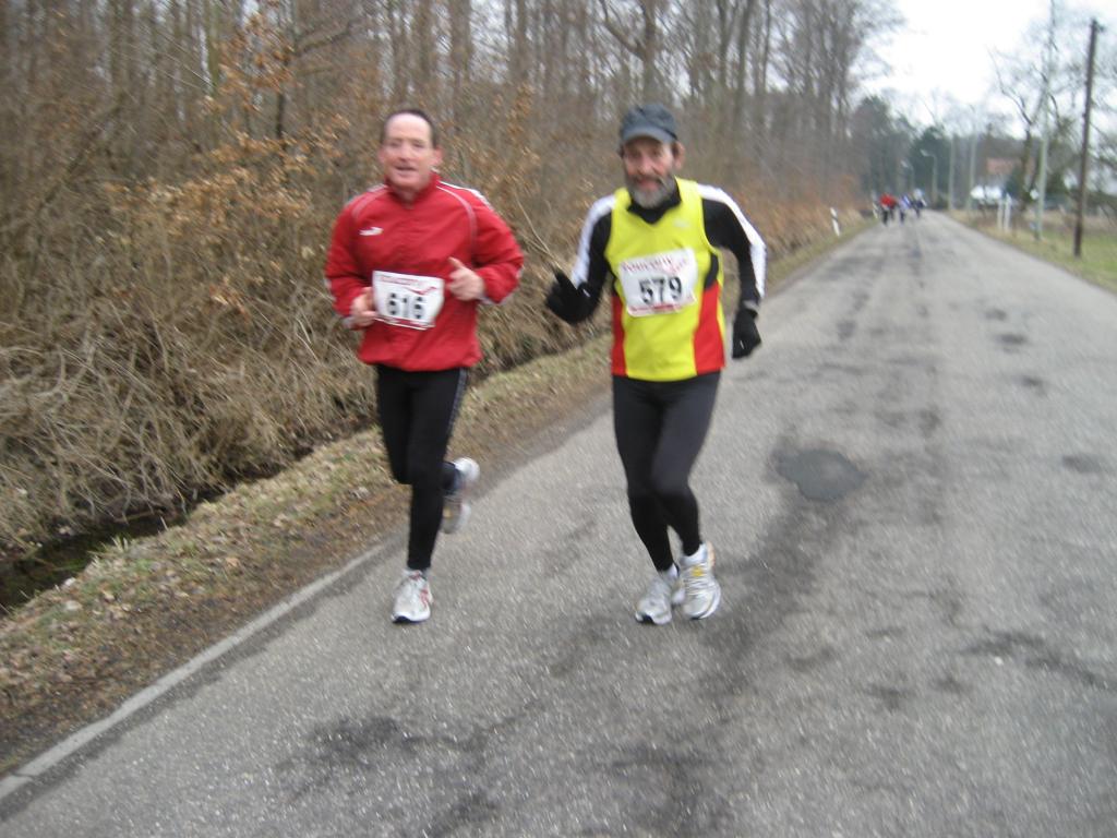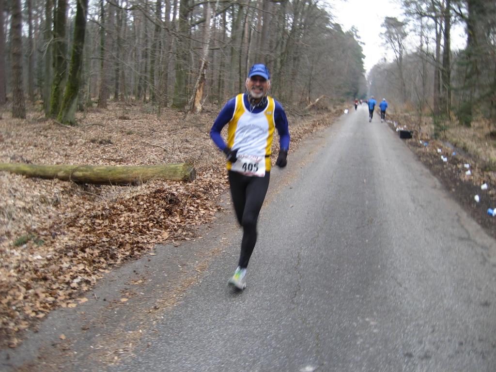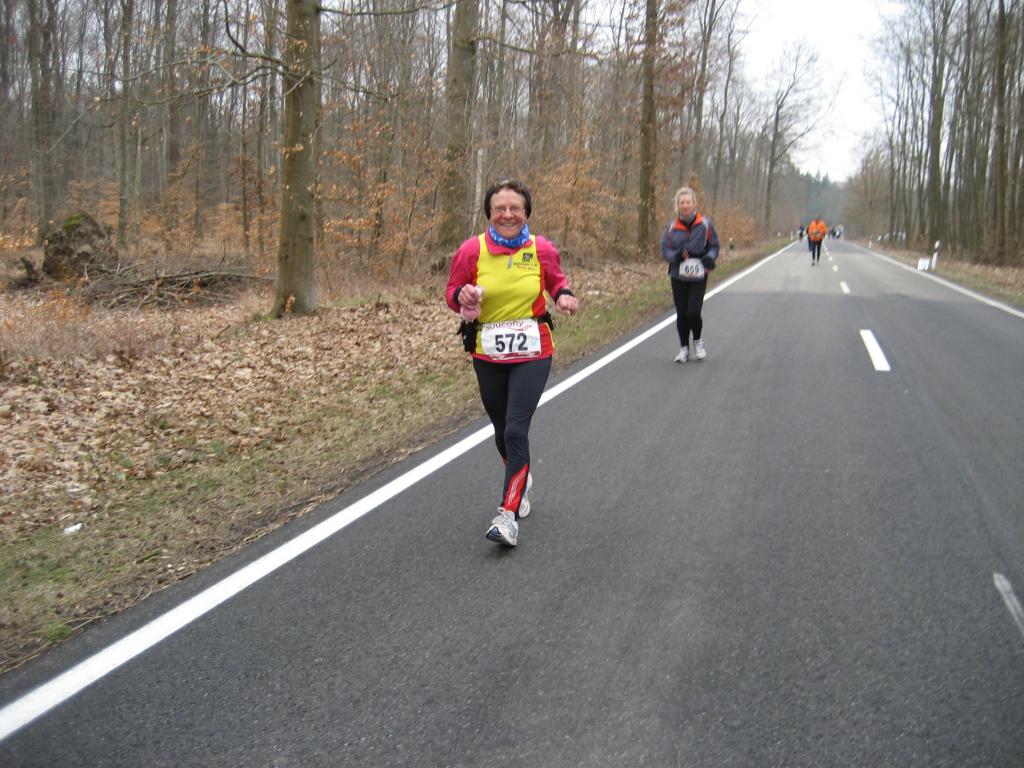 Sorry, Leonhard, aber hier habe ich als Fotograf wohl doch ziemlich versagt. Aber Renate habe ich dann wieder gut getroffen. Diese Szene charakterisiert diesen Marathon sehr schön, denn so verläuft der Kurs auf 16 Kilometern. Gerd noch hinter Renate. Direkt an der Halbmarathonmarke zweigt der Kurs in einen geteerten Waldweg ab. Hier geht es dann gut 5 km zum 2. Wendepunkt und dann nach der 31 km Marke wieder auf die Straße zurück. Ich bin heute gut drauf, Christoph noch besser. Klar, dass man so kein superscharfes Foto hinbekommt.
