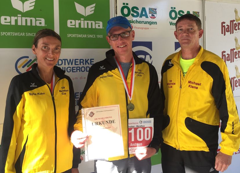Andreas Riedel aus dem thüringischen Kyffhäuserkreis absolvierte am Samstag, 13. Oktober 2018, beim Brocken-Marathon im Rahmen des 41. Harz-Gebirgslaufes seinen 100. Marathon/ Ultra und ist nun stolzes Clubmitglied.