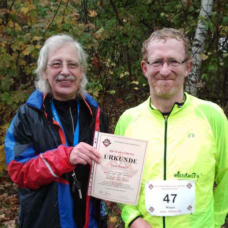"Nebenbei" läuft Klaus auch noch und feierte am 5. November 2016 beim November-Marathon um den Öjendorfer See seinen 300. Marathon-/Ultralauf.