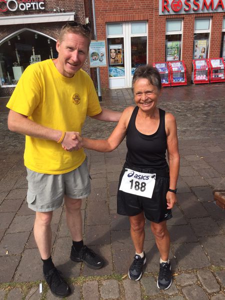 Clubmitglied Rosemarie v. K. aus Kiel läuft ihren 800. M/U "ganz spontan" in Plön.