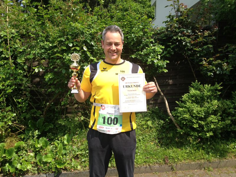 Unser Mitglied Florian ist beim Sparkassen-Marathon in Coesfeld seinen 100. M/U gelaufen.