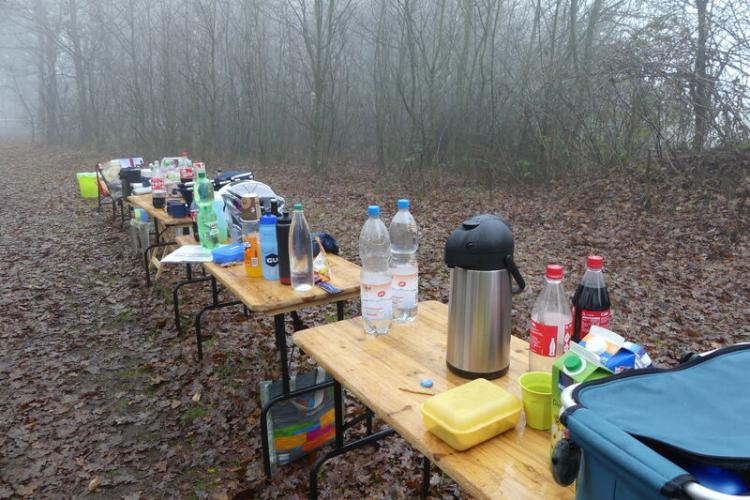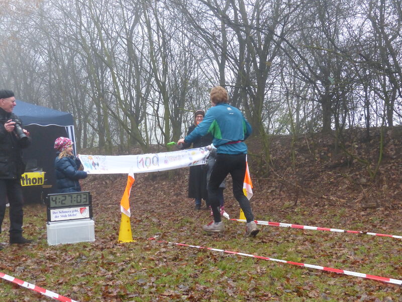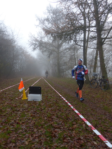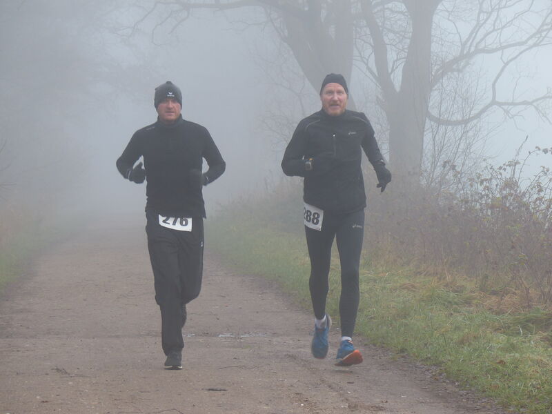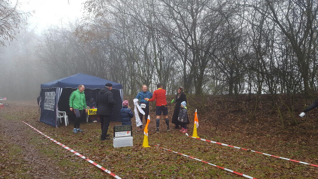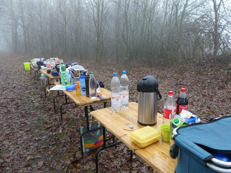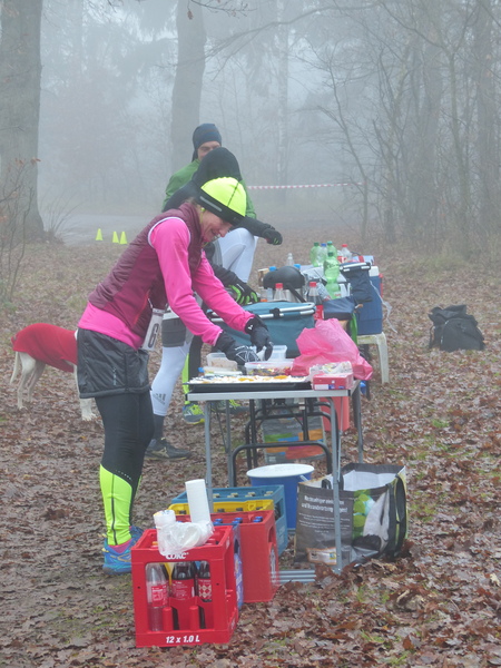 Quentsch Sohn Lasse hatte den wohl härtesten Job an diesem Nebeltag , denn während die Aktiven sich warm laufen konnten, saß er über 7 Stunden bei Temperaturen knapp über dem Gefrierpunkt und einer extrem hohen Luftfeuchtigkeit im Pavillon und schrieb die Rundenprotokolle für die 39 Aktiven. Außerdem trug er die Zeiten in die Soforturkunden ein, half beim Auf- und Abbau und erstellte mit dem alten Quentsch die Ergebnisliste, die an alle Teilnehmer bereits wenige Stunden nach dem Lauf verschickt wurde.