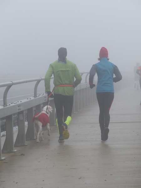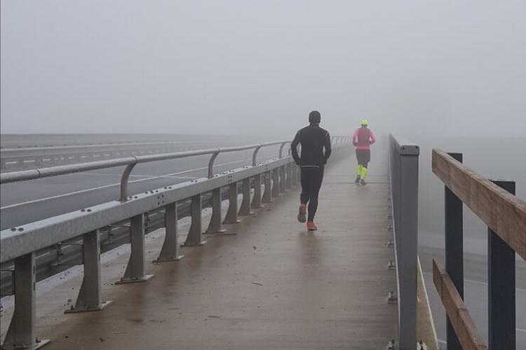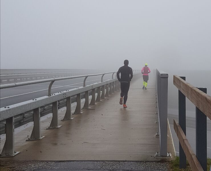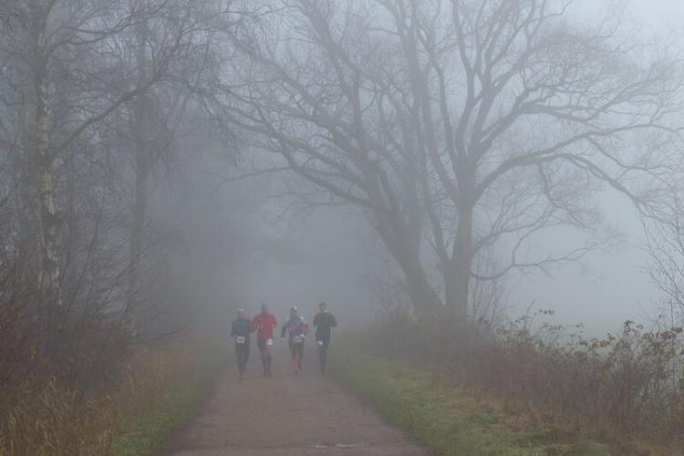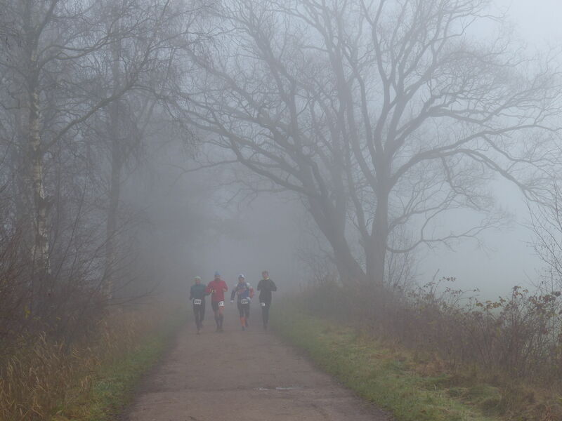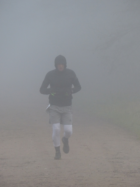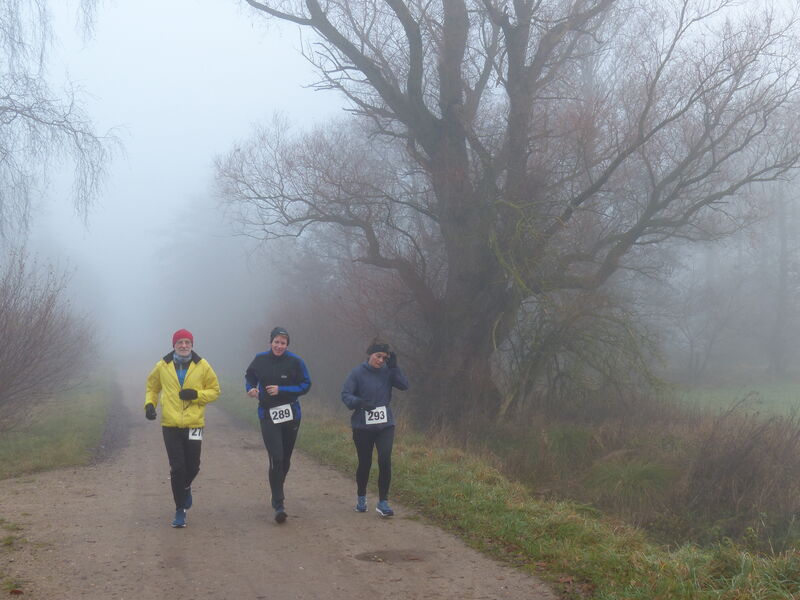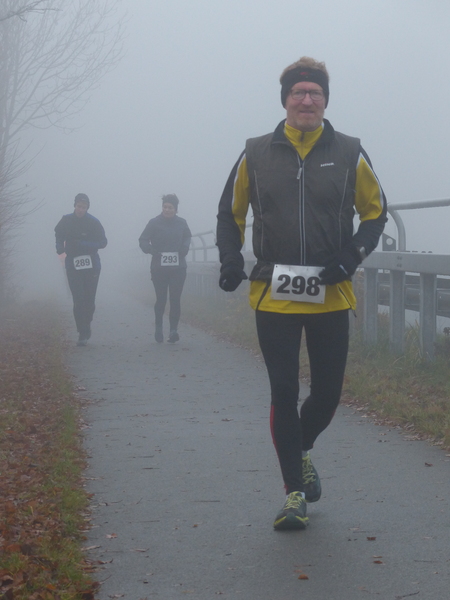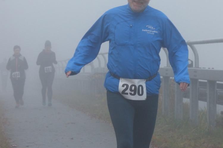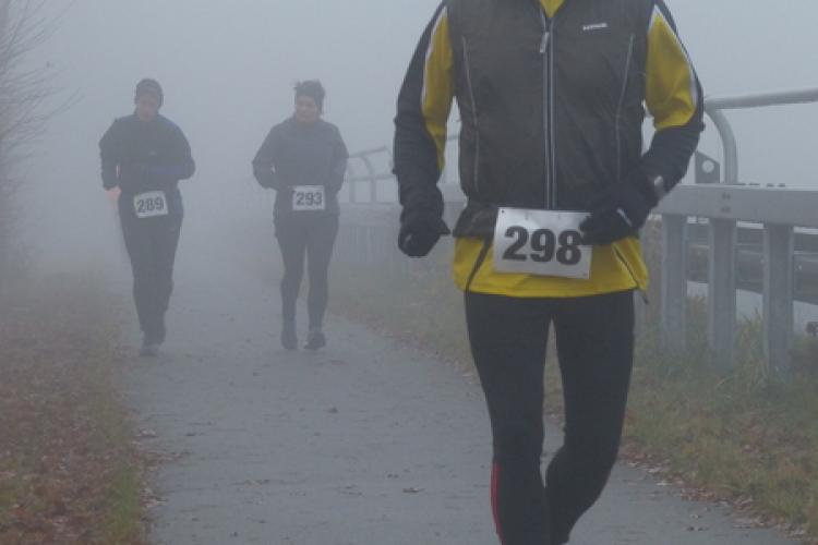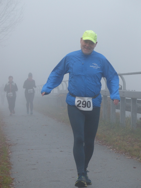 War das Wetter bei den ersten drei Adventläufen in Kaltenkirchen doch recht mies, so war es diesmal zwar erneut kalt (0-4 Grad), zum ersten Mal schneite oder regnete es aber nicht. Dafür gab es dieses Mal beim Adventmarathon starken Nebel, der den ganzen Tag nicht wirklich verschwand. Konnte man bisher bei diesem Event auf den recht langen Geraden gut erkennen, wer so vor einem lief, so war dieses in diesem Jahr überhaupt nicht möglich. Durch das Überqueren von zwei A7 Brücken pro Runde (insgesamt also 20 Brückenüberquerungen) hat dieser Lauf einige Höhenmeter zu bewältigen. Außerdem werden ca. 1,1 km mehr als die Marathondistanz von 42,195 km gelaufen.